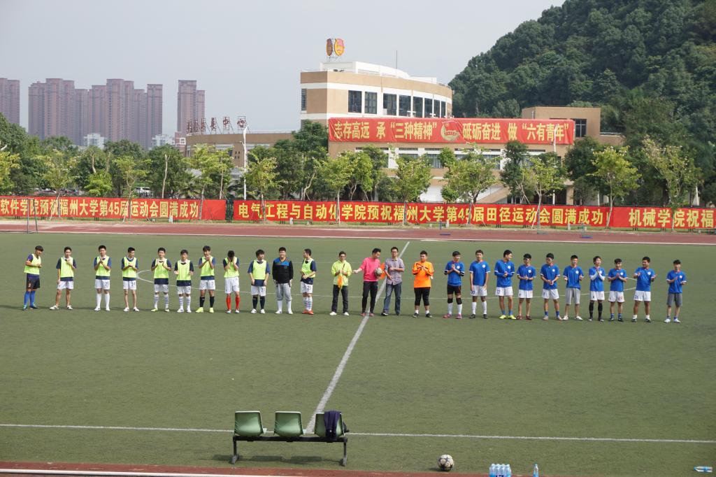 对战海洋学院的比赛在一区操场火热展开。比赛还未开始,队员们个个精神抖擞,蓄势待发。在场观众都殷切期盼双方的精彩对决。