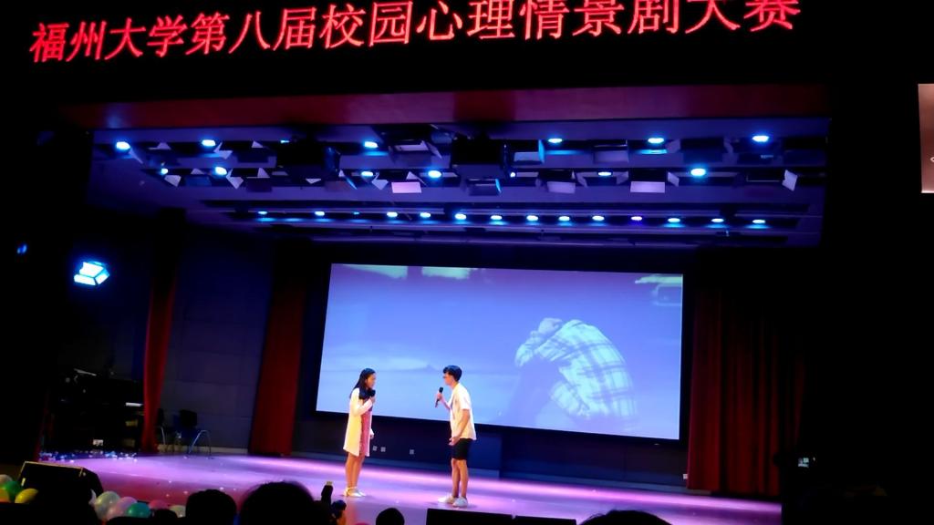 晚七点,比赛正式开始。各学院依次将参赛作品倾情呈现,以风格各异的表现方式诠释对心灵的治愈。在电影天堂