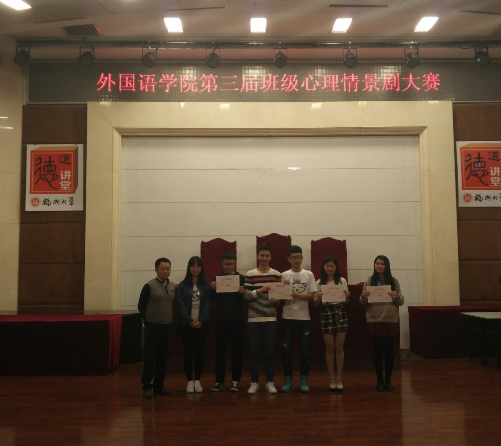 比赛时,演员们精彩的表演,动人的音乐,绚烂的灯光都给评委和观众们留下深刻的印象。其中,德语五班表演心理情景剧《星》,他们凭借出色的演出,新颖的题材摘的本次比赛的桂冠。英语三班的《情绪天平》和日语四班的《强迫症》夺得了二等奖,英语二班的《灵魂出窍》以及英语一班的《生如夏花》获三等奖。此外,现场的有奖竞猜亦精彩纷呈,大家踊跃举手抢答,充分调动了现场的气氛。