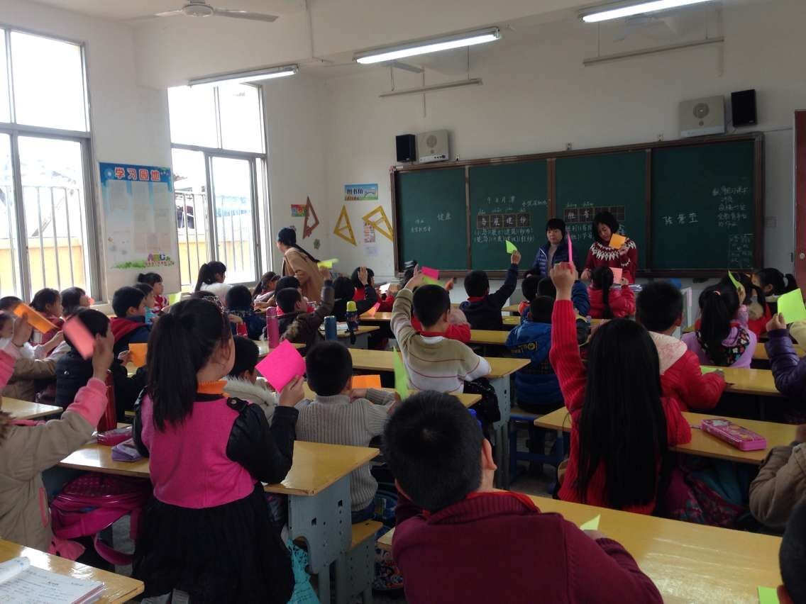 支教项目有声乐、书法、折纸等共六个兴趣小组,下午2点50分第一堂课正式开始。志愿者们自我介绍之后,通过展示课件,手把手教学以及适时的提问交流,和学生们初步建立起了较好的师生关系,班级的气氛活跃。