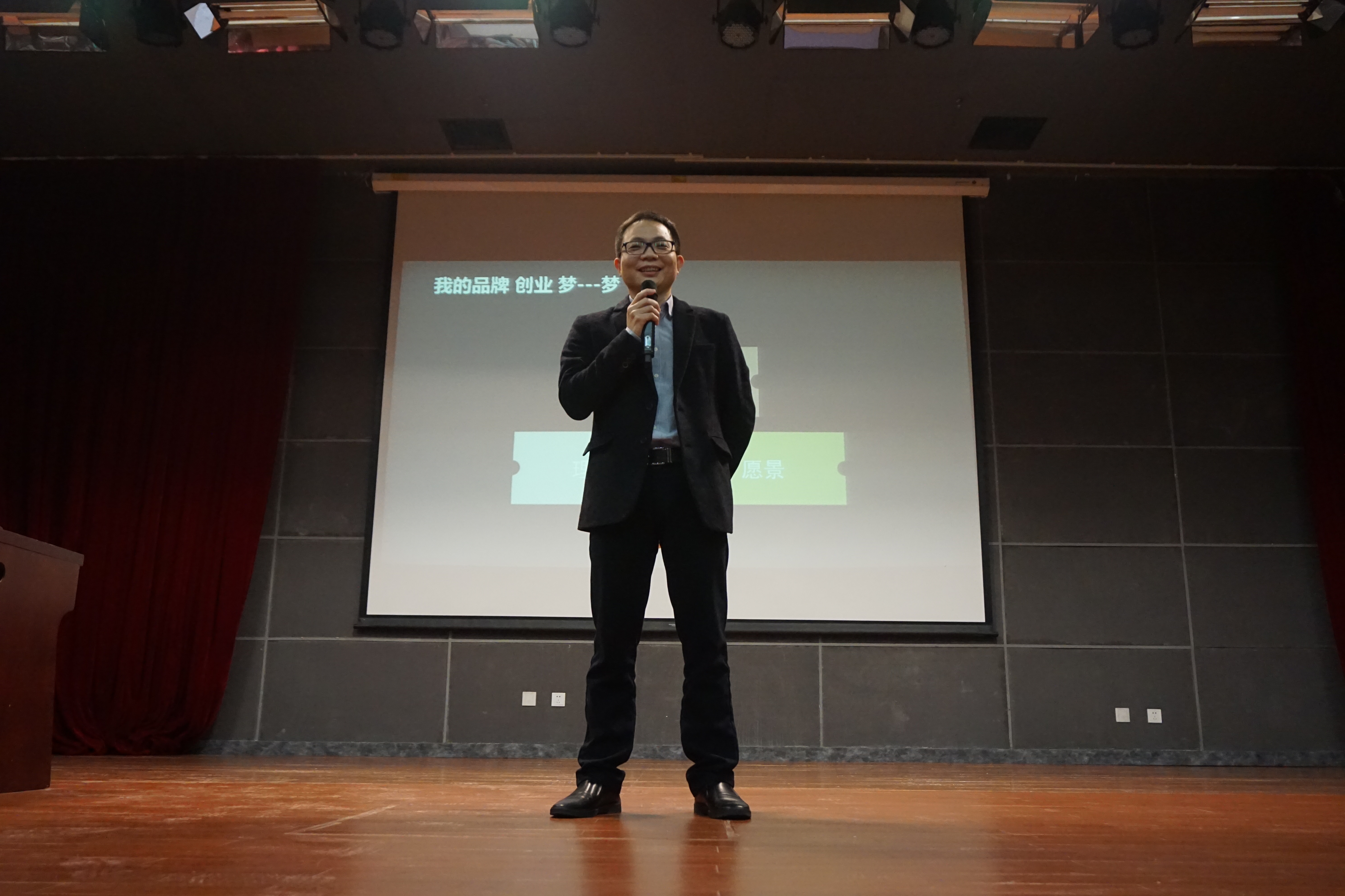 谢一强董事长现为IJOY品牌创始人,福州澎博鞋业有限公司董事长,福州易路时尚网络科技有限公司总裁,是传统外贸企业互联网品牌化转型践行者。讲座中,谢董事长和同学们分享了创业梦,创业品牌,传递“坚持、借力、共赢”的创业理念。讲座的最后,谢董事长给同学们带来了福利——IJOY品牌拖鞋,极大地调动了现场氛围。
