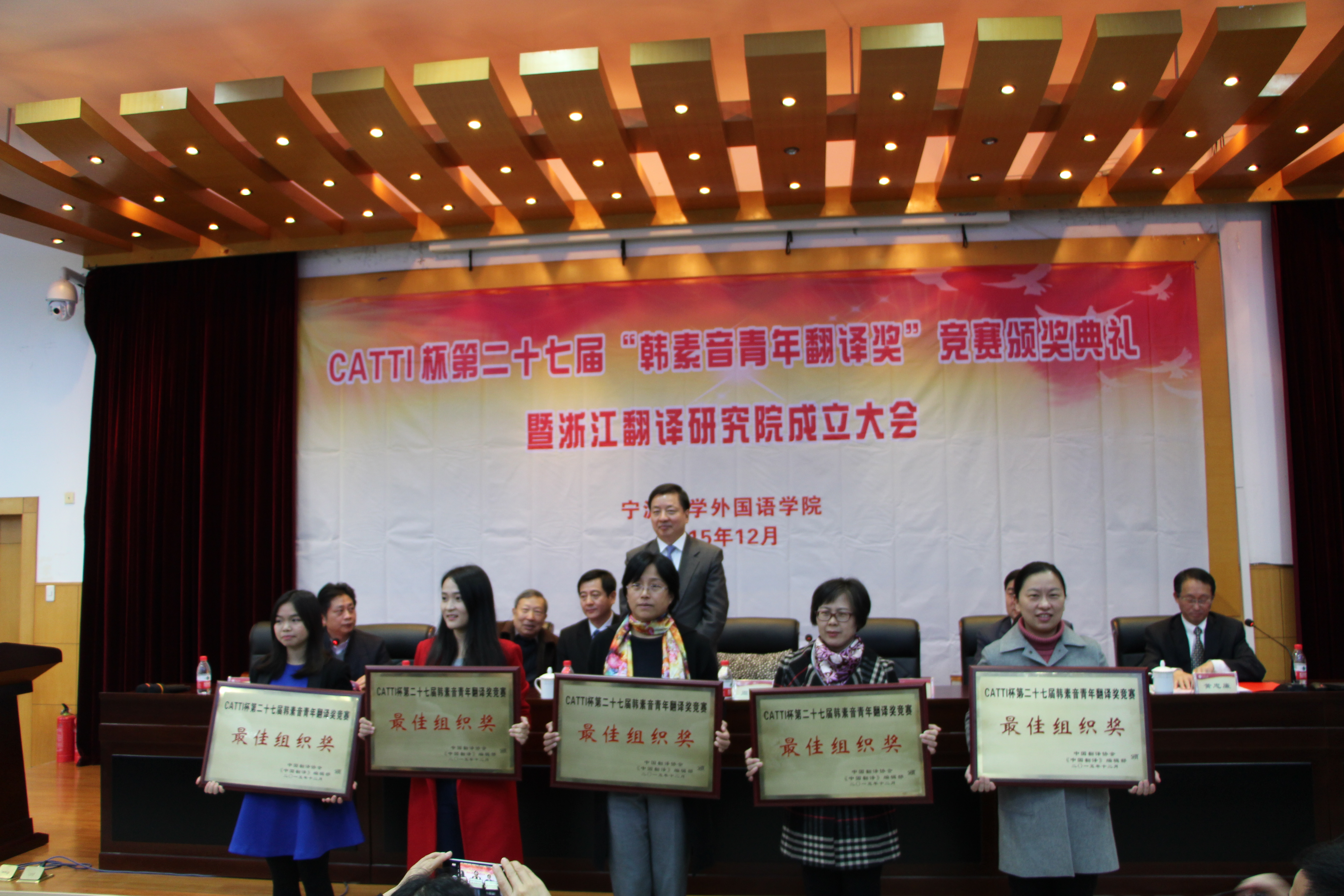 的参赛学生表现突出,共有3位同学获得佳绩。其中2014级英语语言文学专业硕士生肖翠玲荣获汉译英组二等奖(参赛指导老师:陈小慰);2014级MTI专业硕士生叶晓玲(参赛指导老师:陈卫斌)及2012级本科生陈佳(参赛指导老师:叶长缨)荣获汉译英组优秀奖(汉译英组共设一等奖1名,二等奖2名,三等奖7名,优秀奖38名)。本次佳绩得益于以上各位老师的积极组织和辛勤指导,在他们的带领下,我校在众多参赛高校中脱颖而出,获得了“最佳组织奖”的荣誉称号(共五所大学获此荣誉)。