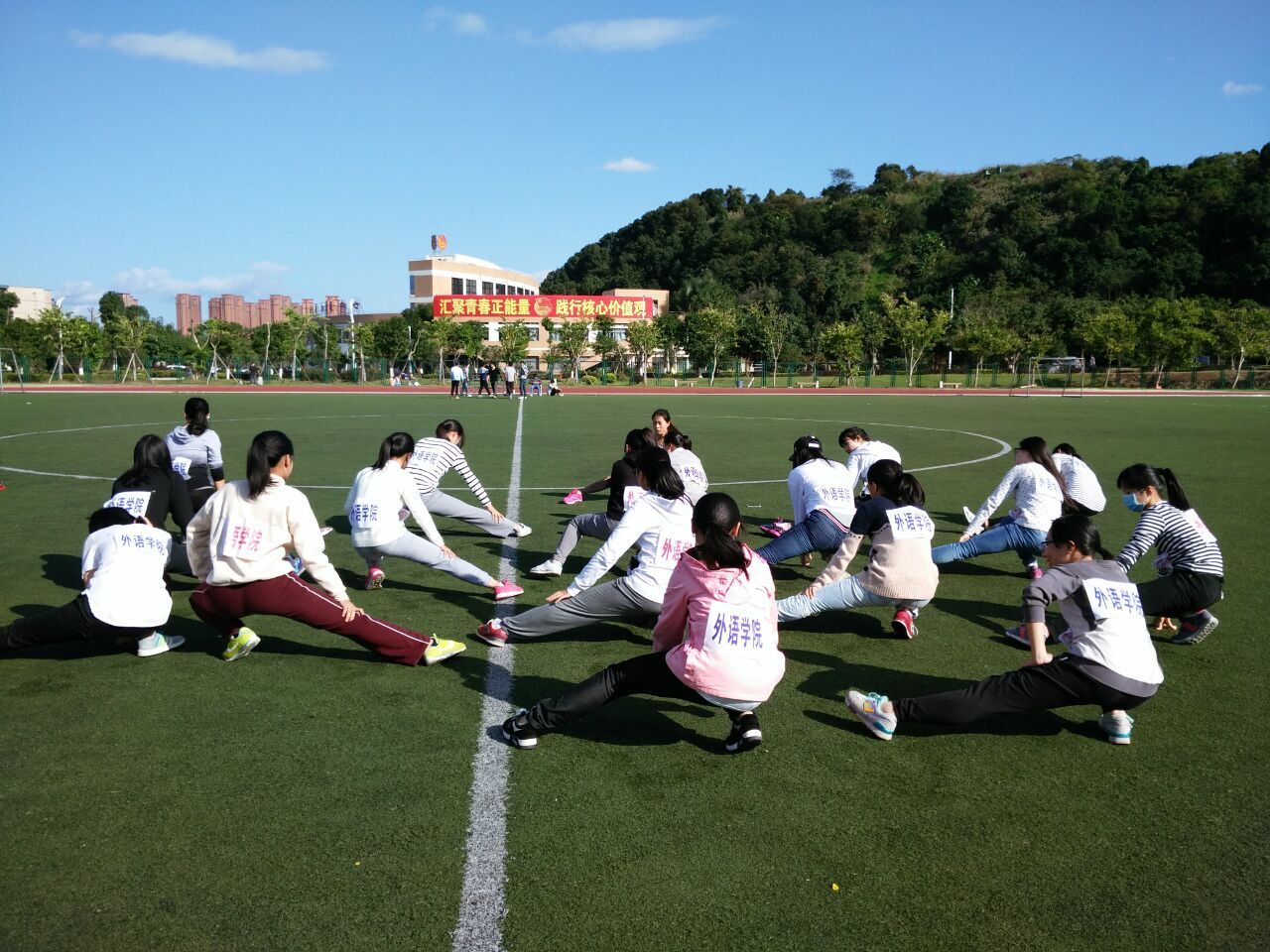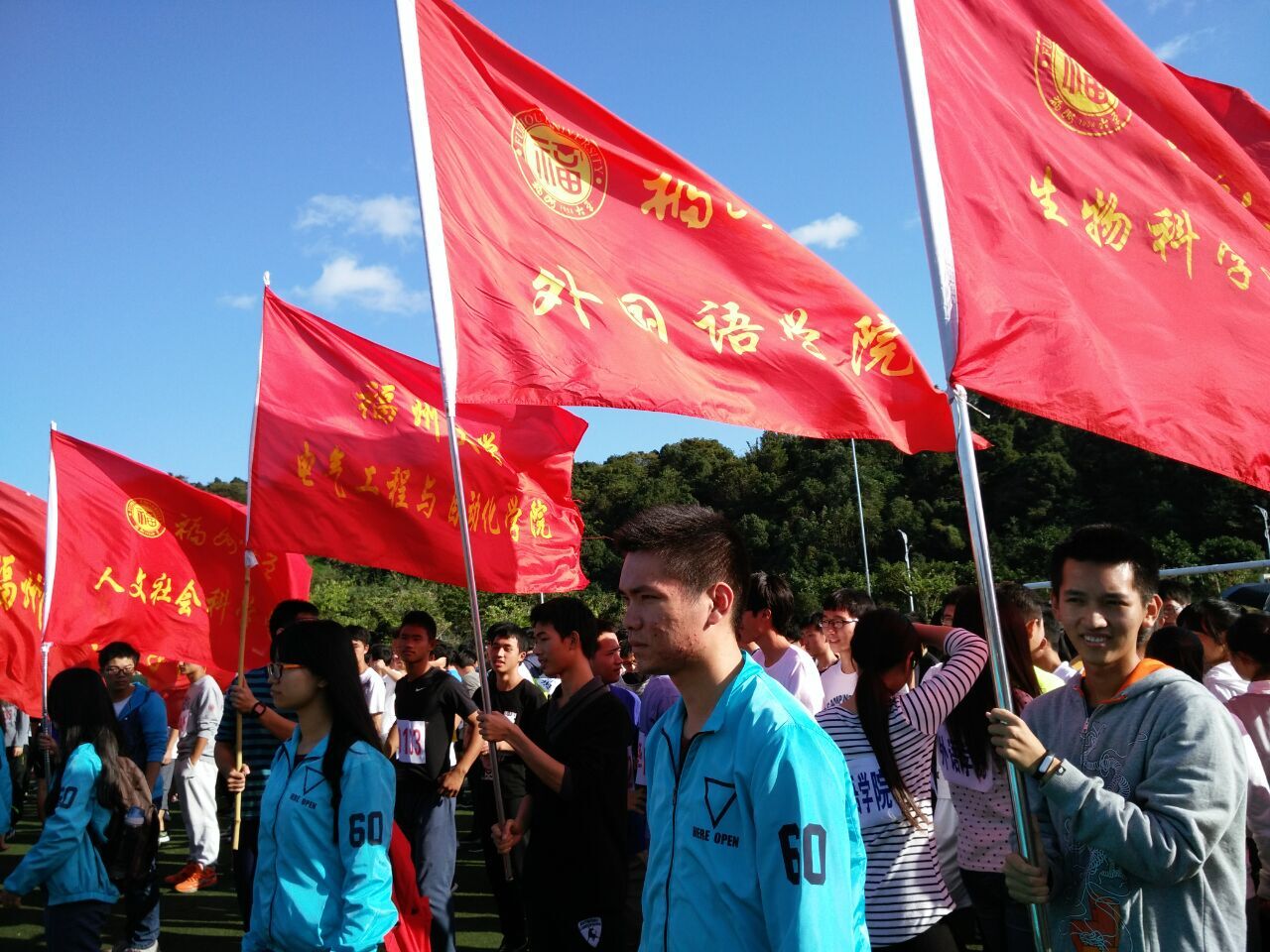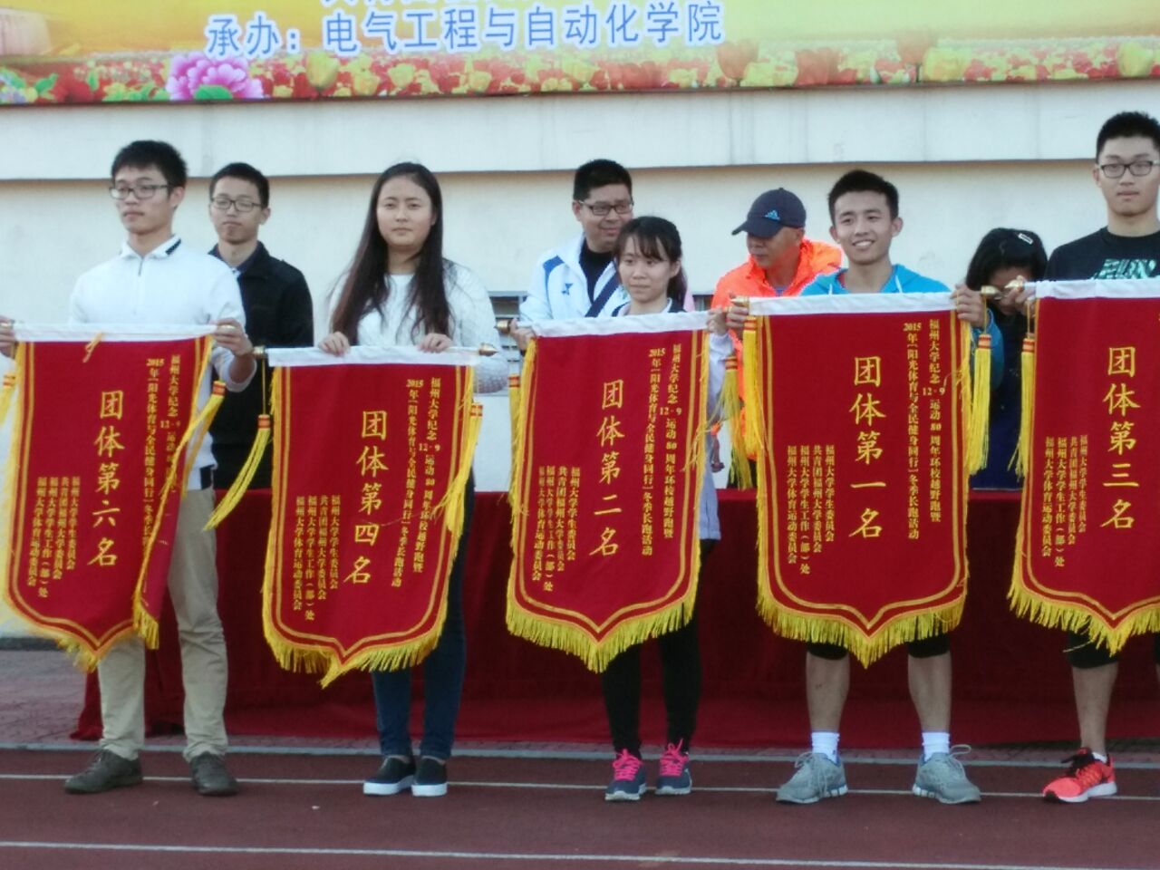 在活动正式开始前,各学院参加此次长跑运动的选手在相关人员的带领下在操场上有序地列队,各个学院的选手们斗志昂扬。短暂的整队之后,长跑比赛正式开始。一声哨响,在红色旗帜的带领下,男子组与女子组的选手们一齐出发,壮观的场面引得场外欢呼呐喊。在本次环校跑活动中,电影天堂