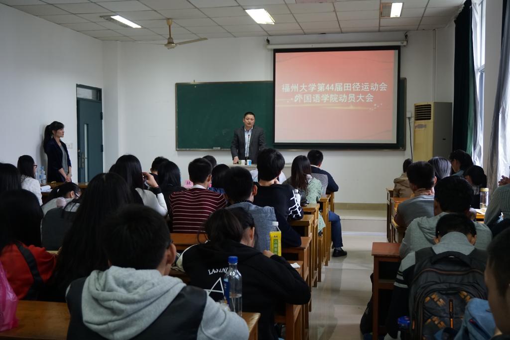 于院办405召开校运会动员大会。出席本次活动的有院党委周强副书记,团委书记林昕老师,辅导员叶志廷老师,许震宇老师,黄小龙老师 ,以及体育教练谢佳辉老师,各位参赛运动员。