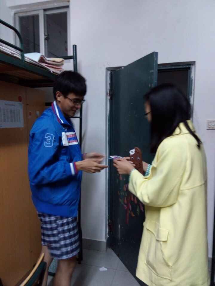 心理部组织部员来到宿舍给参赛的运动员们送上加油卡片及一些补充能量的糖果,以让运动员更有信心去迎接接下来的比赛。
