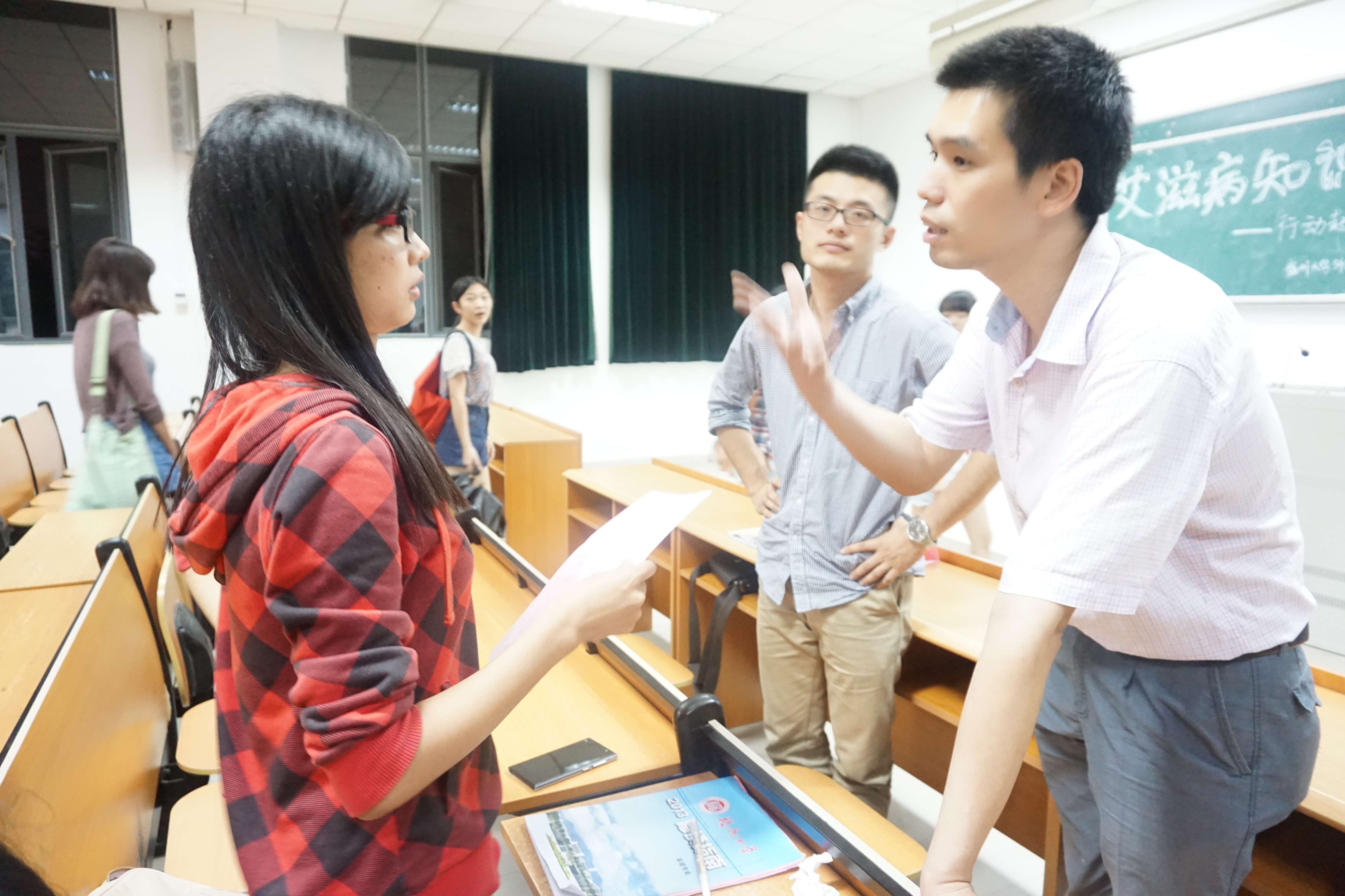 在主持人简短介绍后,张宏老师以图表数据、寓言故事等方式让同学们了解了艾滋病的由来、艾滋病的表现以及危害。在互动环节,同学们积极踊跃地回答问题并且获得了精美礼品。最后张宏老师给同学们介绍了有关艾滋病的治疗方法,同学们受益匪浅。