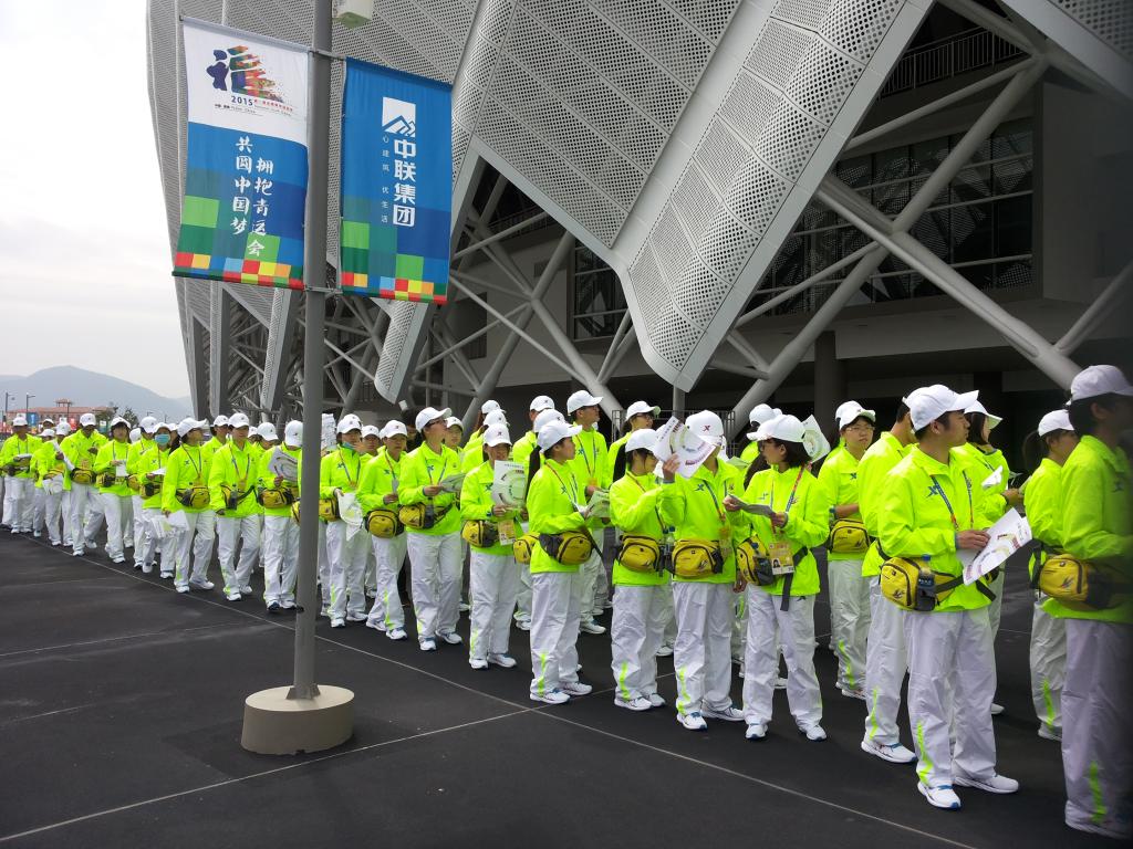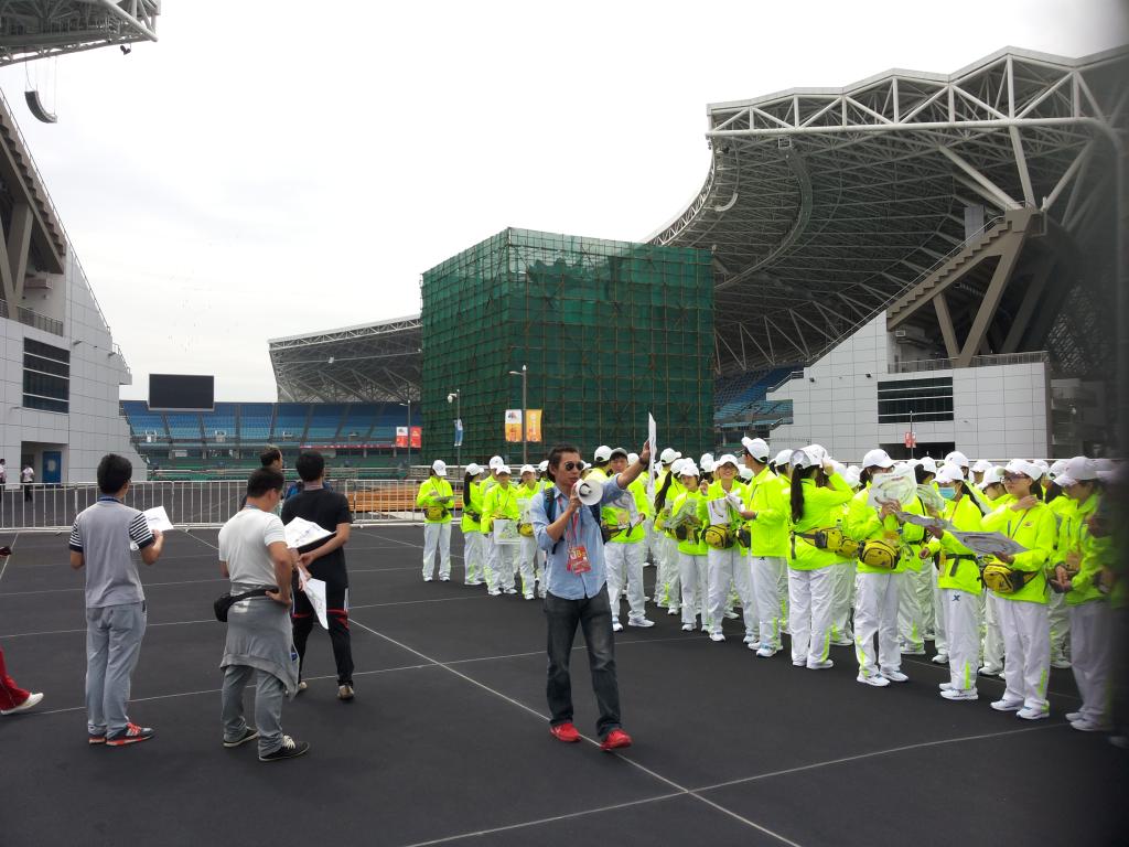 13级志愿者们在辅导员黄小龙老师的带领下,前往福州市海峡奥体中心进行志愿者培训活动。