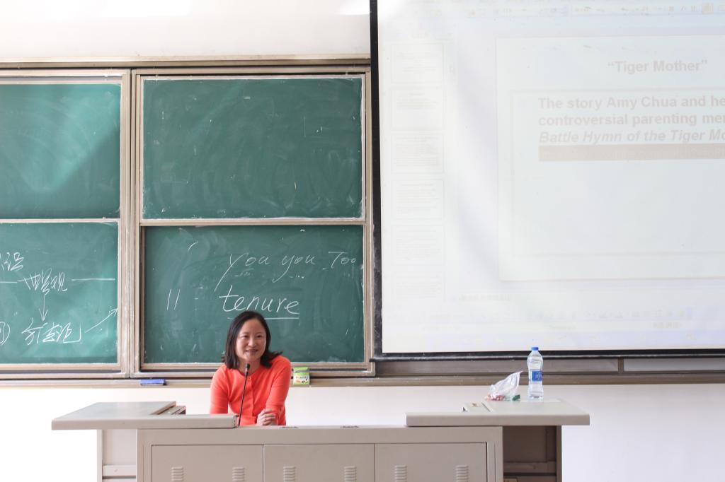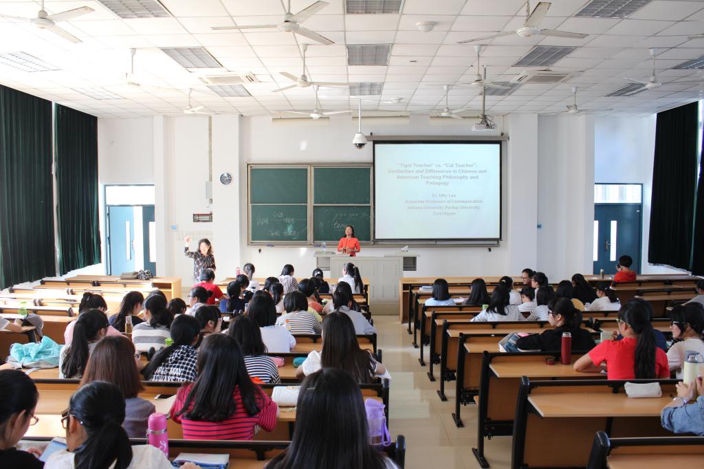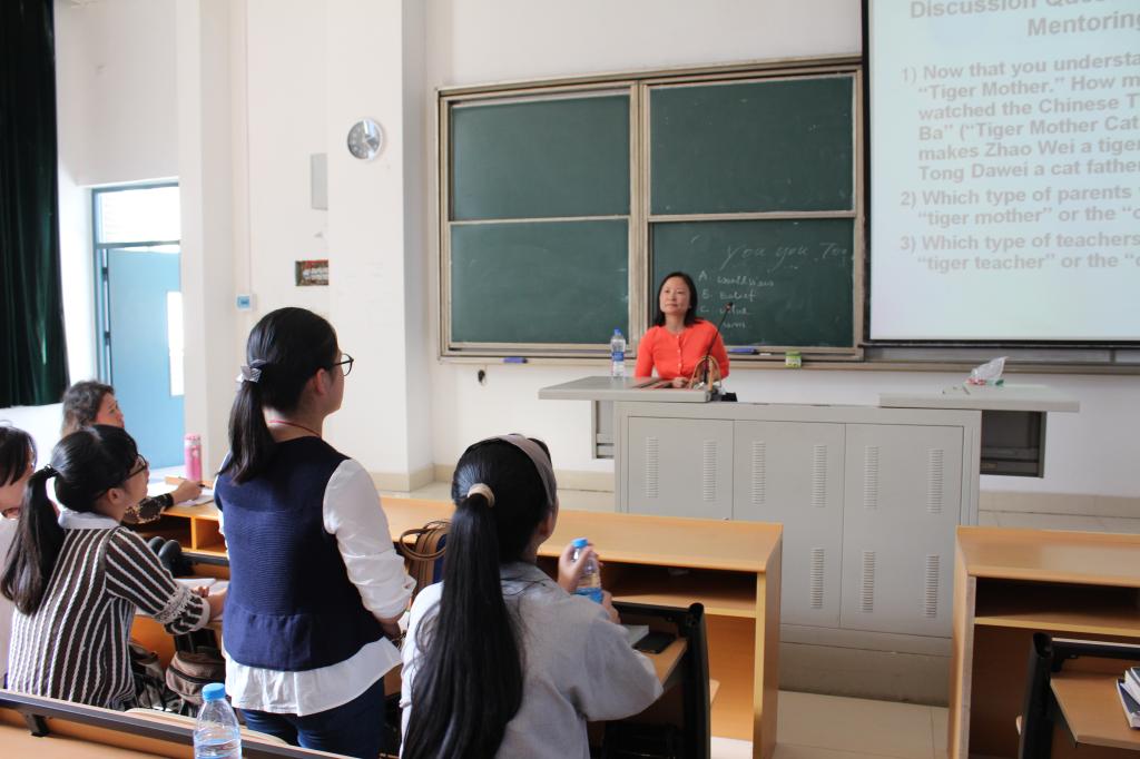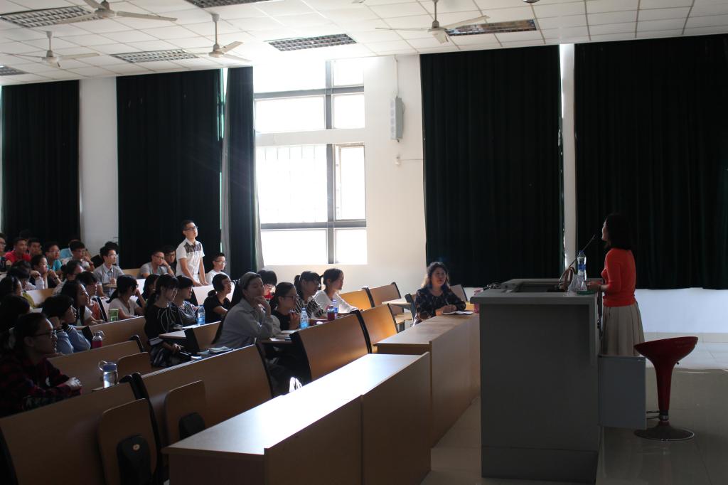 下午2时,罗老师以“Tiger teacher or cat teacher?”的独特问题拉开课堂序幕,为学生分析“老虎老师”以及“猫咪老师”的不同并陈述自身观点,同时鼓励学生积极发表看法。接着,罗老师向学生们介绍了部分外国学习方法及学位具体情况。授课过程中,学生都被罗老师独特的讲课方式、风趣的语言以及流利的口语所吸引,积极回答问题,展现自我。