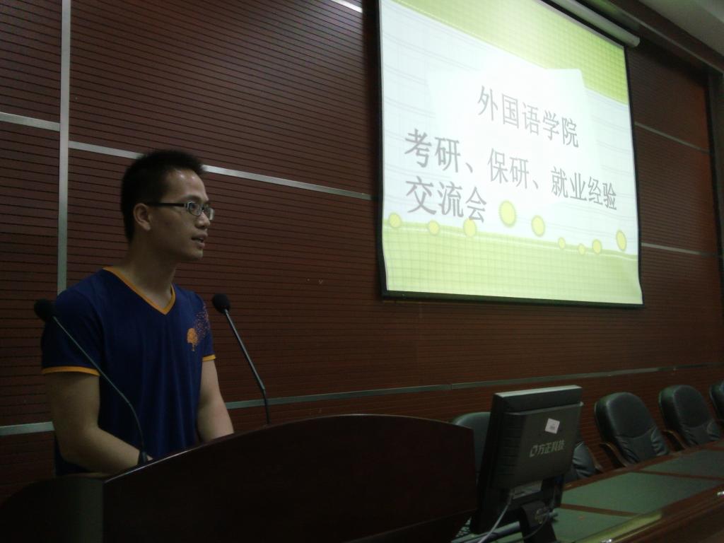 举办的考研、就业经验分享会在院办会议室召开。出席大会的有辅导员李晓宇老师、许震宇老师,以及全体2012级学生。