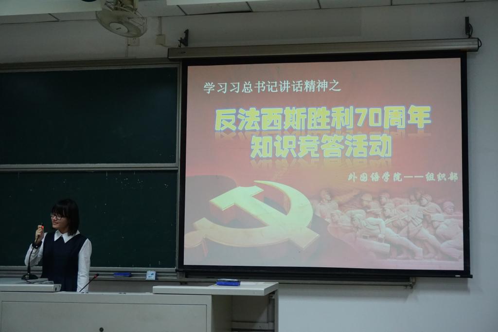 组织部在文1-404举办学习习总书记讲话精神之反法西斯战争胜利70周年知识竞答活动。本次活动是以班级为单位的有奖竞答活动,活动以观看视频后拨打热线竞猜问题的方式进行。电影天堂