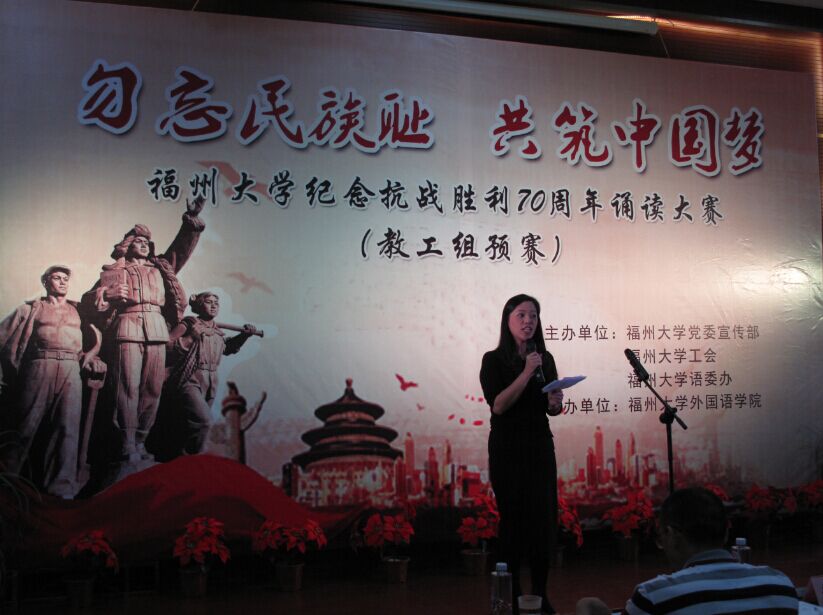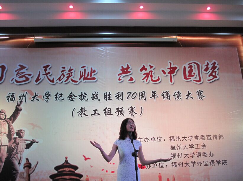 承办的以“勿忘民族耻,共筑中国梦”为主题的纪念抗战胜利70周年朗诵大赛之教工组预赛在电影天堂