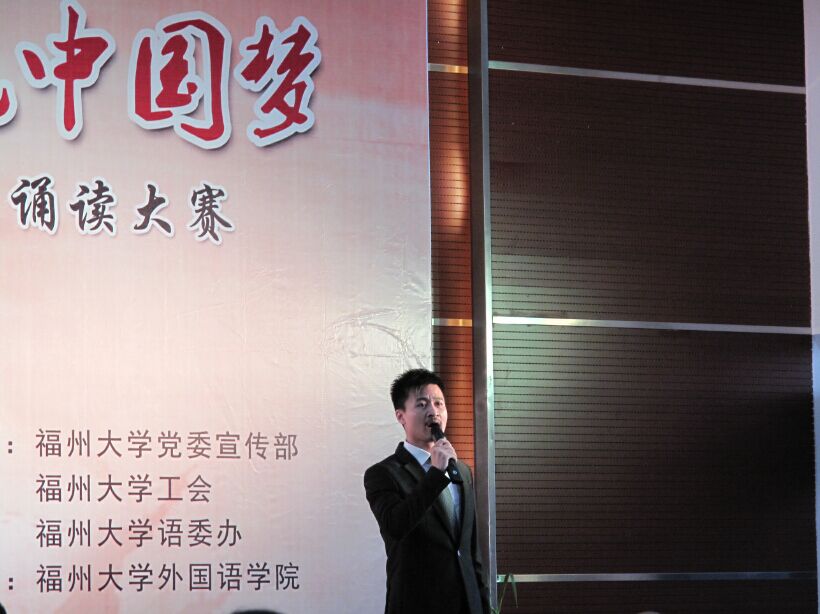 中场休息十分钟过后,各学院各机关的代表教师纷纷上场,用或深情,或叹惋,或慷慨激昂的语调诉说着祖国一路走来的艰辛不易、陈述着血与泪的历史记忆、表达着自身对祖国大家庭的热爱、传递着他们对共筑美好中国梦的信念与信心,感染着现场的每一位观众。