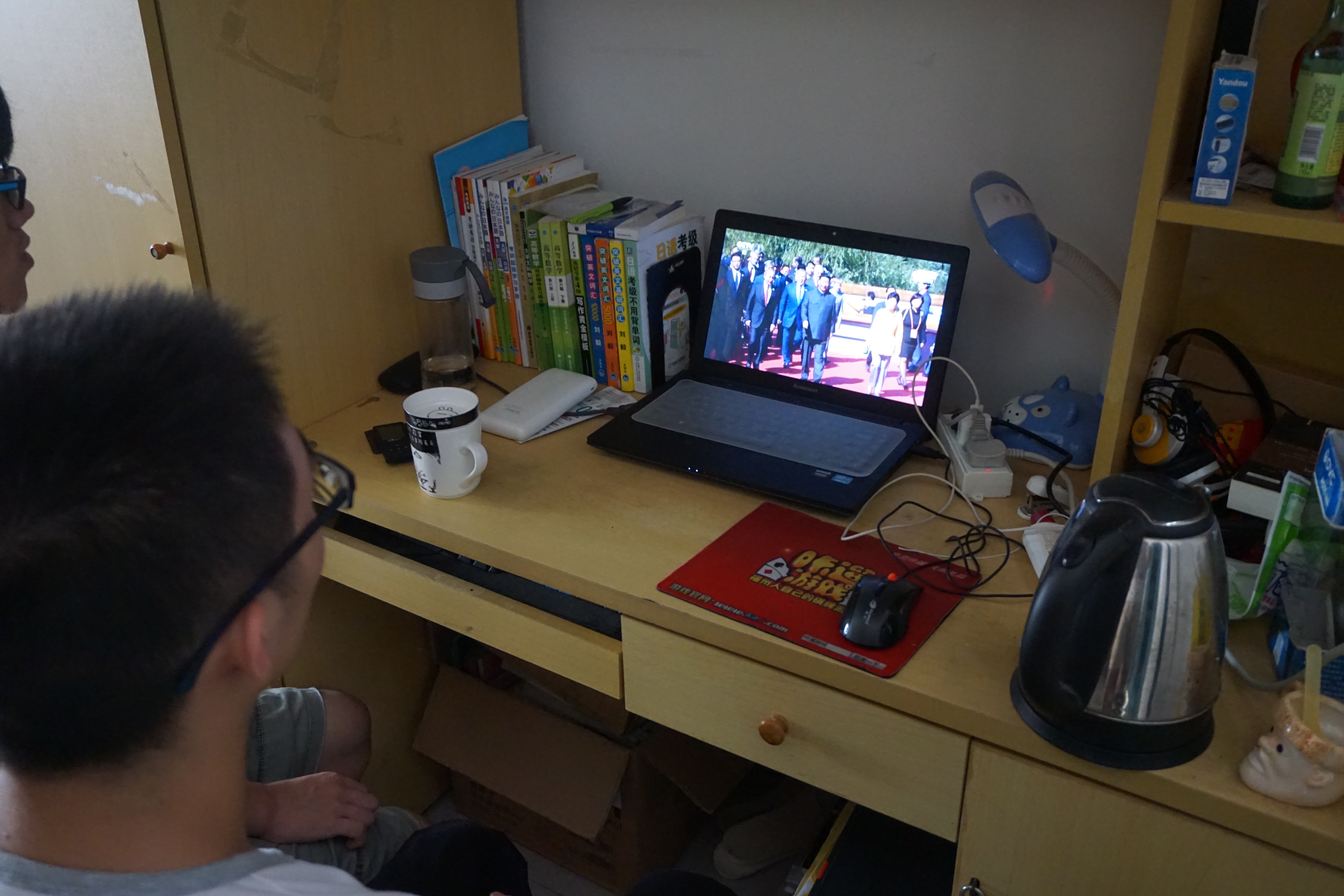 同学们或在宿舍,或在食堂,或在家中,都早早起床等待阅兵式的直播。阅兵式,是对抗战胜利的纪念,是对抗战英雄的缅怀,亦是对世界和平的期许。70年的风雨兼程,中国人民意气风发,书写了奇迹般的辉煌;70年的岁月如歌,中华民族自信豪迈,阔步走上了实现伟大复兴的康庄大道。不少同学表示“看得热血沸腾”,“为祖国而骄傲”。