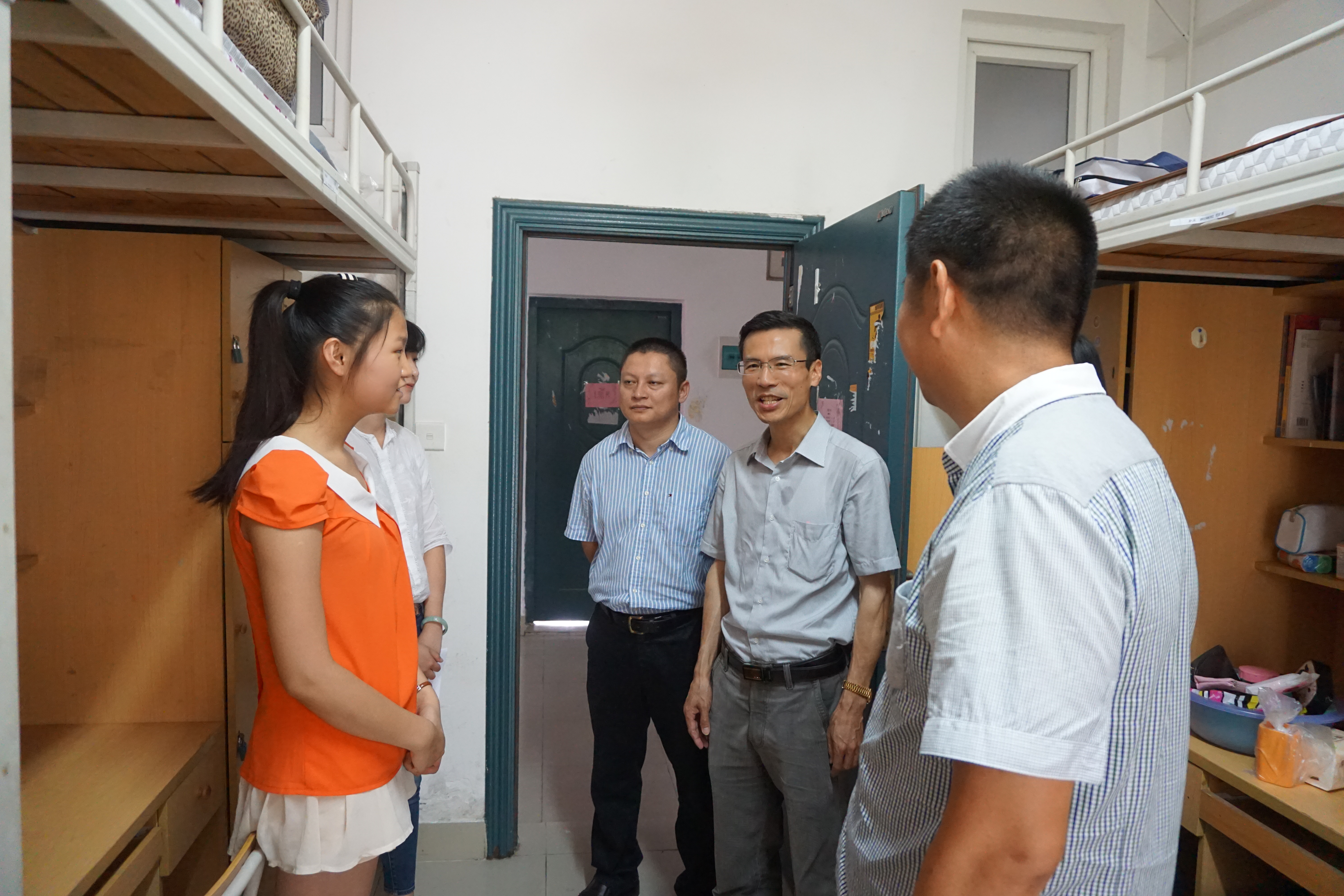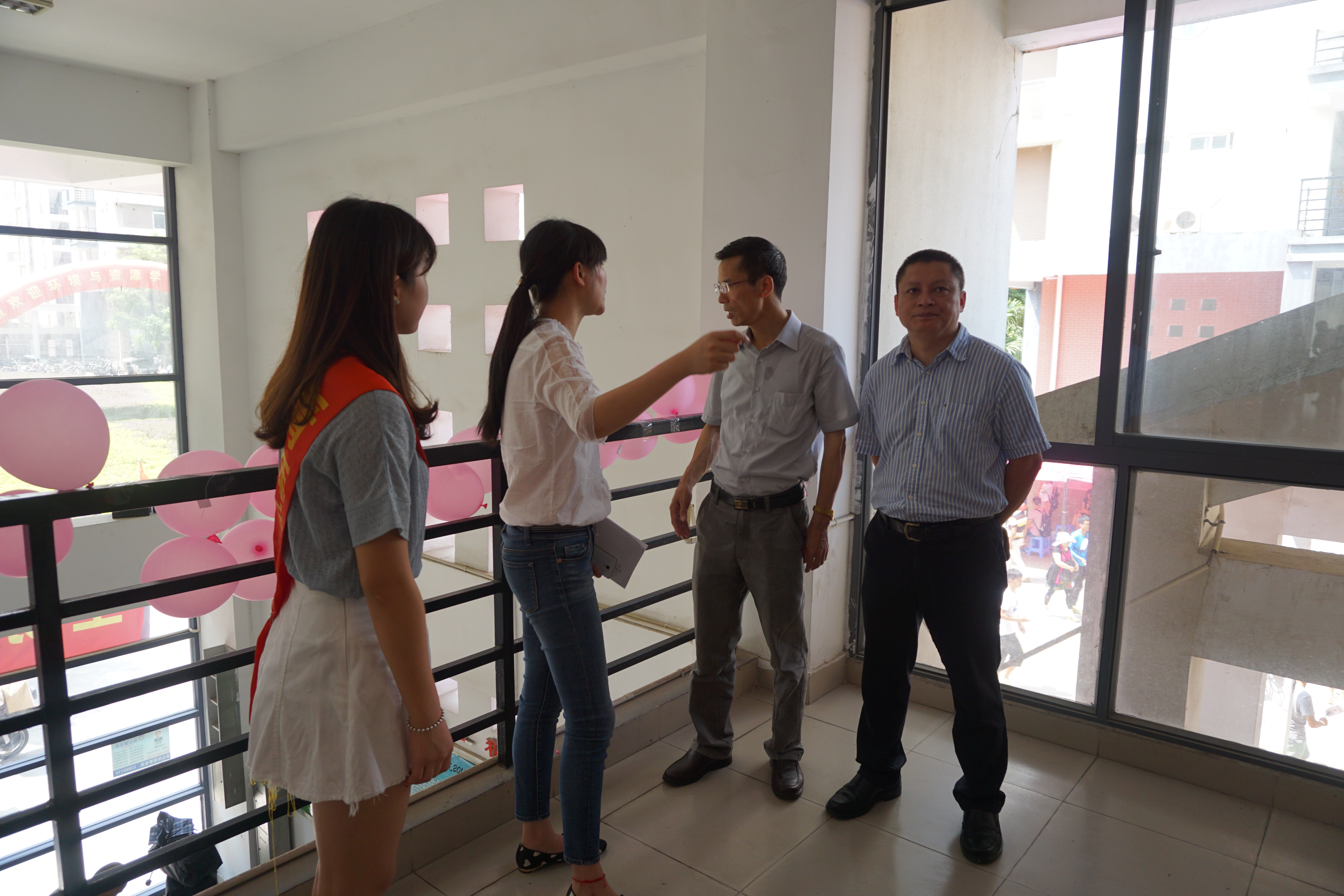 党委倪朝兴书记、院党委周强副书记、团委书记林昕老师及各年级辅导员亲临迎新现场视察,向参与迎新的工作人员们表示慰问,并走进新生宿舍与新生及家长进行了亲切的交谈。