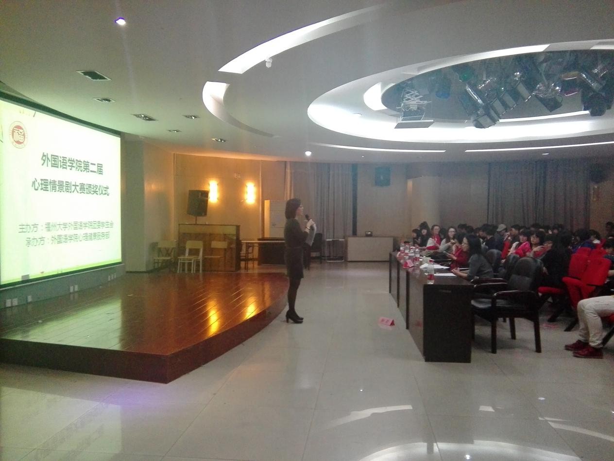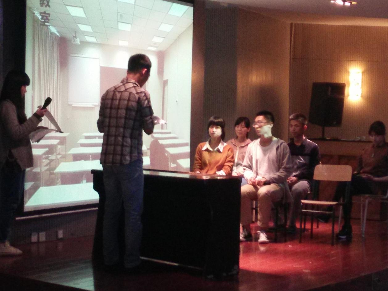 本次心理情景剧大赛采用话剧表演的形式为同学们展示了大学生经常出现的人际交往、恋爱、强迫倾向等大学生常见的心理问题。这些贴近大学生生活的剧目,把各类心理问题展现得栩栩如生。欣赏完三个班级的演出后,中间穿插进入心理问题有奖问答环节,观众积极地抢答,现场的气氛热闹异常。七个班级的心理情景剧表演结束后,潘曦主任对参与大赛的各个剧目进行了分别点评,并对心理情景剧编写的要点和表演方式进行了指导。最后,通过约3个小时的激烈角逐,2014级英语3班获得一等奖,英语4班和英语1班获得二等奖,其他参赛班级获得三等奖,最佳男女主角等个人奖项。