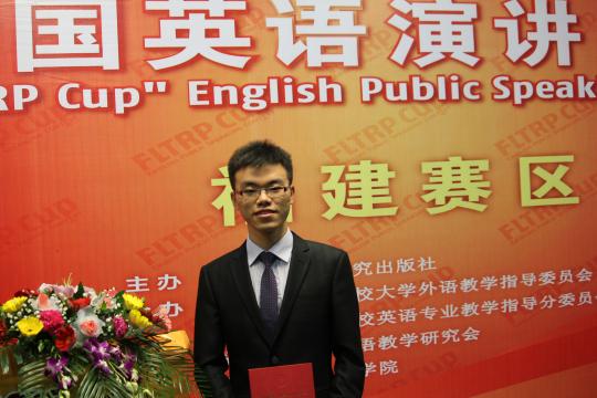 、福建师范大学、福建农林大学、福建医科大学、集美大学等省内47所高校的大学生参加。大赛最后决出3名特等奖,其中陈锦锋同学成绩名列特等奖中的第一名,陈锦锋同学精彩的演讲、流畅的语言、独到的见解、沉稳的台风给大家留下了深刻的印象,充分展现了我校大学生良好的英语素质,得到评委们的充分肯定。陈锦锋同学将于12月3日-8日与厦门大学等另外2名同学一起代表福建省赴北京参加全国决赛。