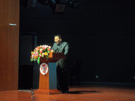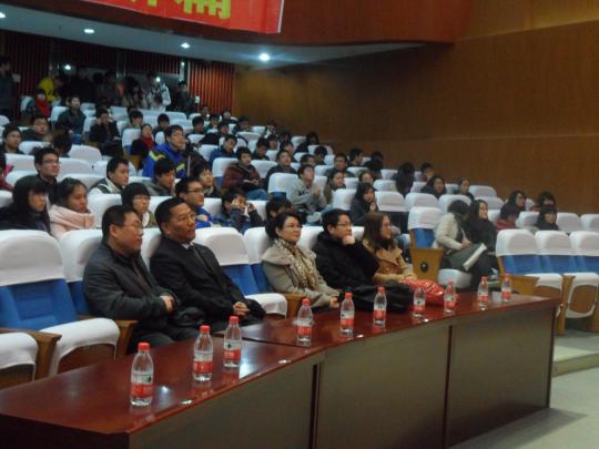 讲座尚未开始,博学厅现场已快座无虚席。同学们都顶着寒风和暴雨,兴致勃勃地前来一睹这位远方贵宾的风采。刘敏榕书记致热情洋溢的欢迎词之后,讲座正式开始。在新西兰风情和华夏文化的交流与融合方面,旅居新西兰十余载的冯一飞先生深有体会。他谈吐大方,侃侃而谈,用雄厚的声音、轻松的语调为同学们讲述了自己的亲身经历,诙谐幽默的语言让现场欢笑不断。
