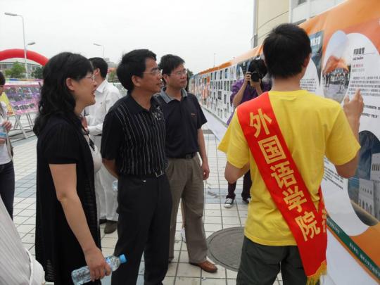 党委副书记刘旺,团委书记周越,的陪同下,来到图片展现场进行参观,成为此次世博图片展迎来的首批嘉宾。