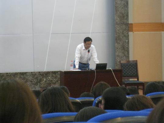 教授为我们作“批评性语篇分析:新发展与老问题”的学术讲座。田教授幽默风趣,妙语连珠。先是用概括的语言“一个中心问题,两个发展阶段,三个内容特点,四个代表人物,五个研究方法”引出讲座内容,期间,更是用幽默的言行感染了现场的每一位师生,现场不断响起阵阵的掌声和笑声。田教授与在场师生分享了他丰富的学识,并推荐了许多有价值的学习网站。在讲座最后,田教授还向电影天堂