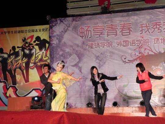 党委副书记刘旺及团委书记周越、环境与资源学院党委书记石炳文及党委副书记蔡剑英、建筑学院党委副书记张红等。此外,各学院领导、辅导员,还有校学生会及各兄弟院系的学生会代表亦莅临现场观看演出。