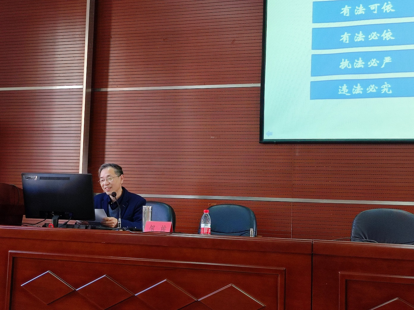 法学院博士生导师邹雄教授作专题宣讲报告。报告会由院党委程贞玫副书记主持,全体教职工党员和学生党员代表参加。
