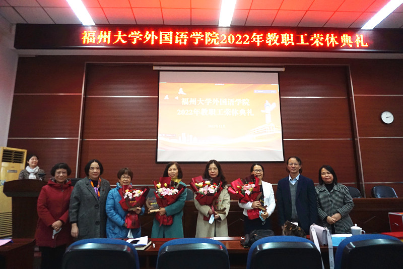 线上线下隆重举行2022年度教职工荣休典礼。蒋炎媄、周春秀、汤英莎、林群等4位2022年度荣休教师现场出席典礼,接受学院全体教职工的祝福。