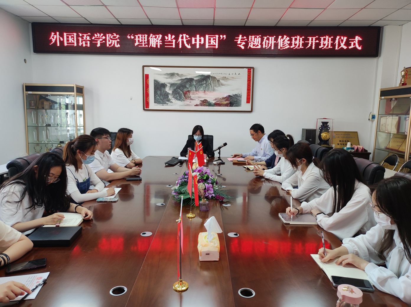 理解当代中国专题研修班开班仪式在学院208会议室举行。院党委程贞玫书记、蓝荣聪副书记和全院学生支部书记、学生党员代表等参加开班仪式。