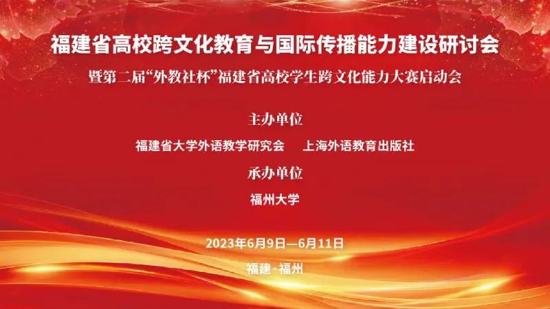 2023年6月9-11日,由福建省大学外语教学研究会和上海外语教育出版社联合主办的“2023 年福建省高校跨文化教育与国际传播能力建设研讨会——暨第二届“外教社杯”福建省高校学生跨文化能力大赛启动会”在福州成功举办,大会由电影天堂