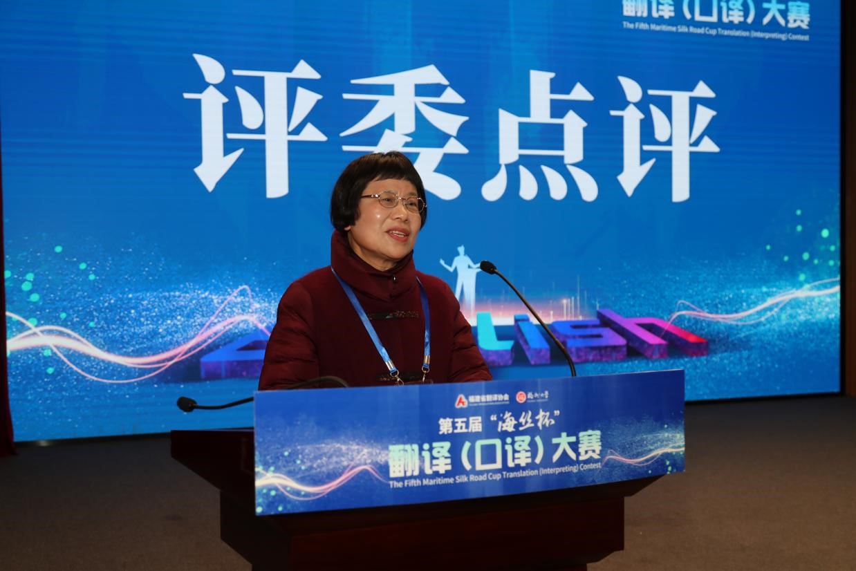 赛后,陈小慰教授对在场选手的表现进行点评。陈教授表示,选手们的语言质量与传达信息的能力令人印象深刻,选手们应借助大赛平台,积累更多翻译经验。同时,选手们要提高准确表达具体数据的能力,充分理解吸收材料信息。除此之外,优秀的口译者需听得更多、读得更多、写得更多,时刻了解世界与中国正在经历的变局,积累更多必要的背景知识。