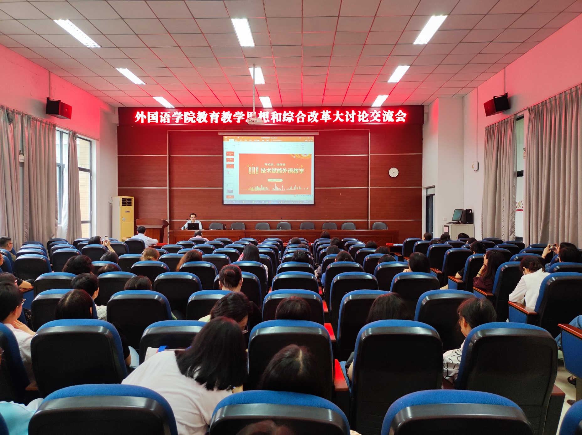郑剑委博士以“技术赋能外语教学”为题,讲述了自己使用人工智能技术在外语教学中应用的经验,与全院教师分享交流了外语教学新理念、新技术、新方法,为推动电影天堂