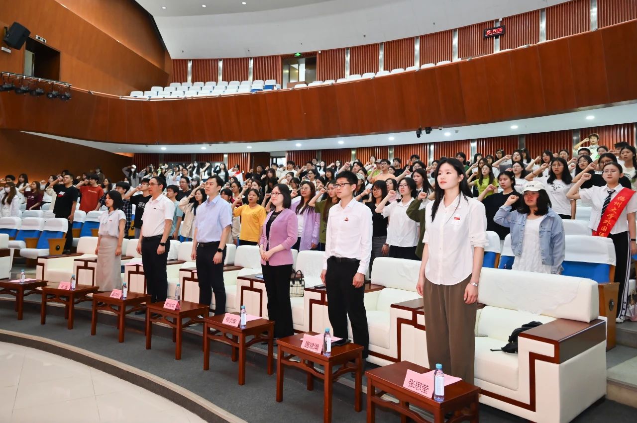 最后,林扬同学带领全体同学青春宣誓,承诺听党话、跟党走,到党和国家最需要的地方奉献青春,以真才实学服务人民,以创新创造贡献国家,不负党和人民的希望,努力成为可堪大用、能担重任的栋梁之才,不忘初心,将青春献给党。