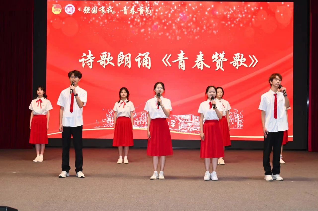 的同学带来了精彩朗诵《青春赞歌》。外院学子青春飞扬,深情抒发奋斗之志,展现报国情怀。