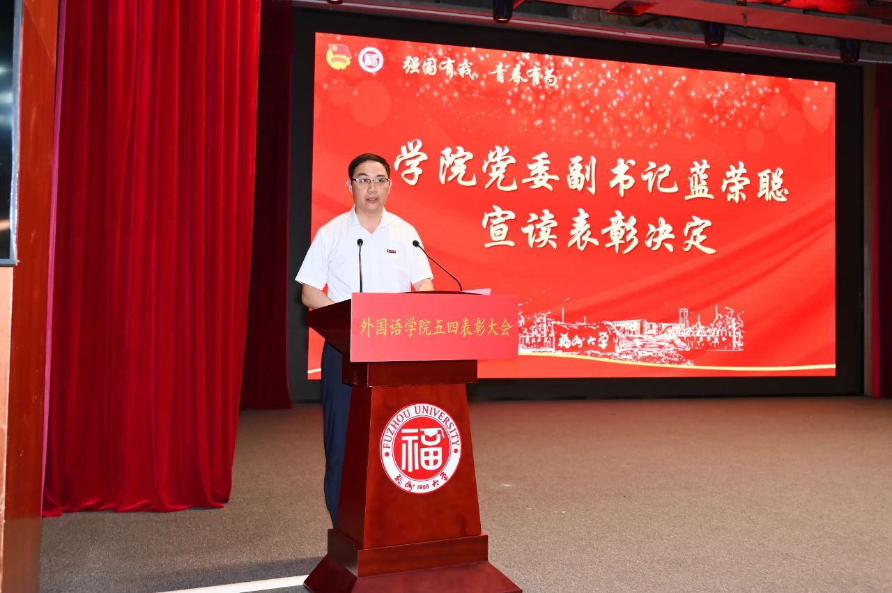 在旗山校区图书馆博学厅举行“强国有我,青春有为”纪念五四运动105周年暨表彰大会。院党委书记程贞玫,院党委副书记、纪委书记蓝荣聪,院团委副书记唐斌湖,福建扬腾创新信息科技有限公司总经理助理林渊培先生,电影天堂