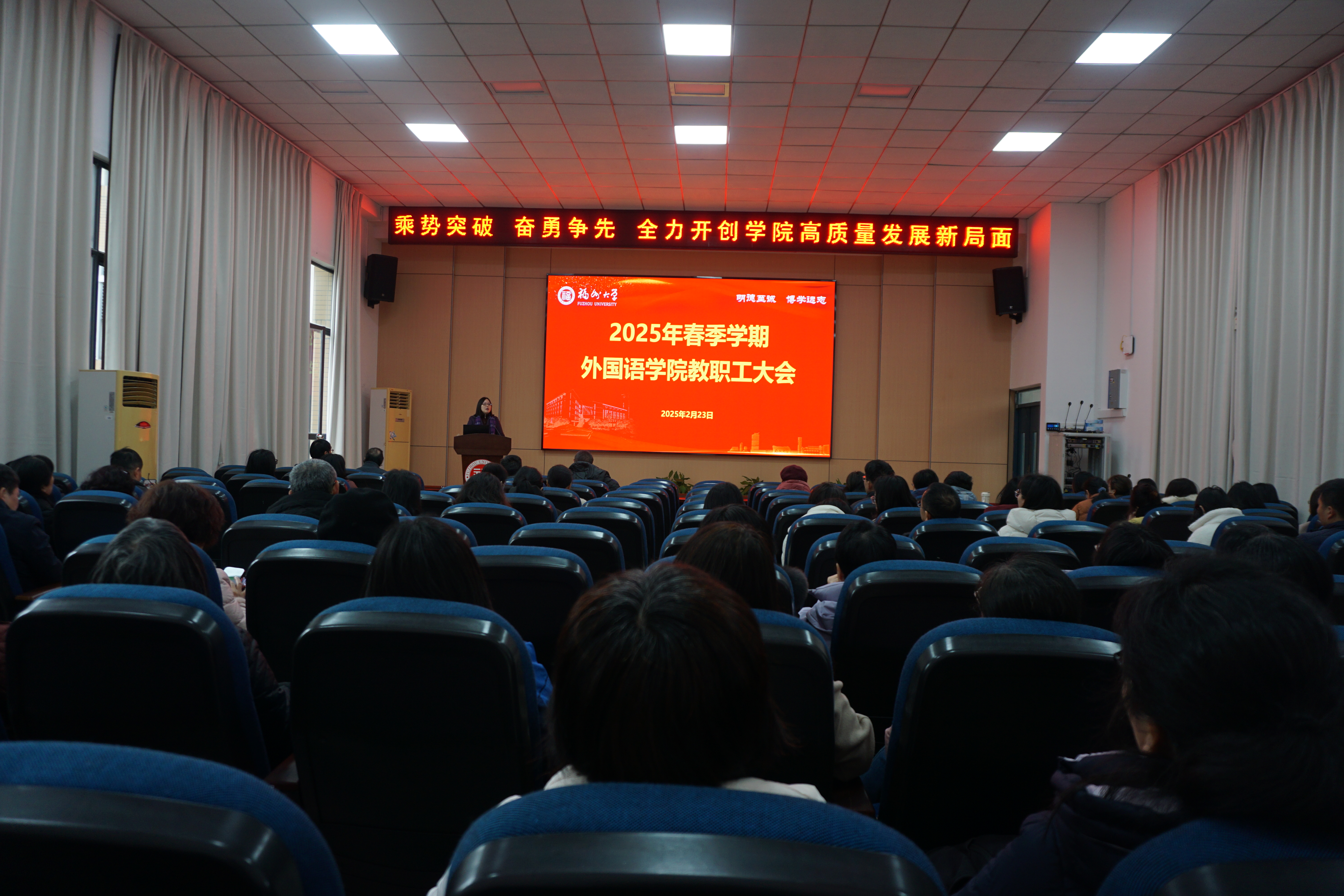 2月23日上午,学院在三楼报告厅召开2025年春季学期教职工大会。会议由钟晓文院长主持,学院全体领导与教职工参加。
