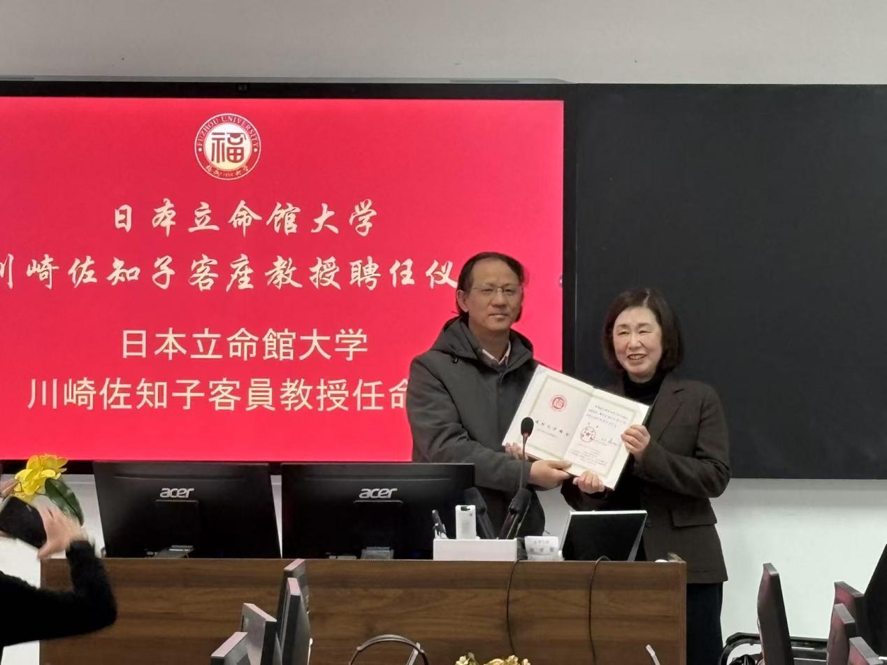 院长钟晓文教授在讲座后为川崎教授颁发了我校客座教授聘书,并与川崎教授商讨今后两校间的具体合作事宜。川崎老师的来访不仅在学术研究上为电影天堂