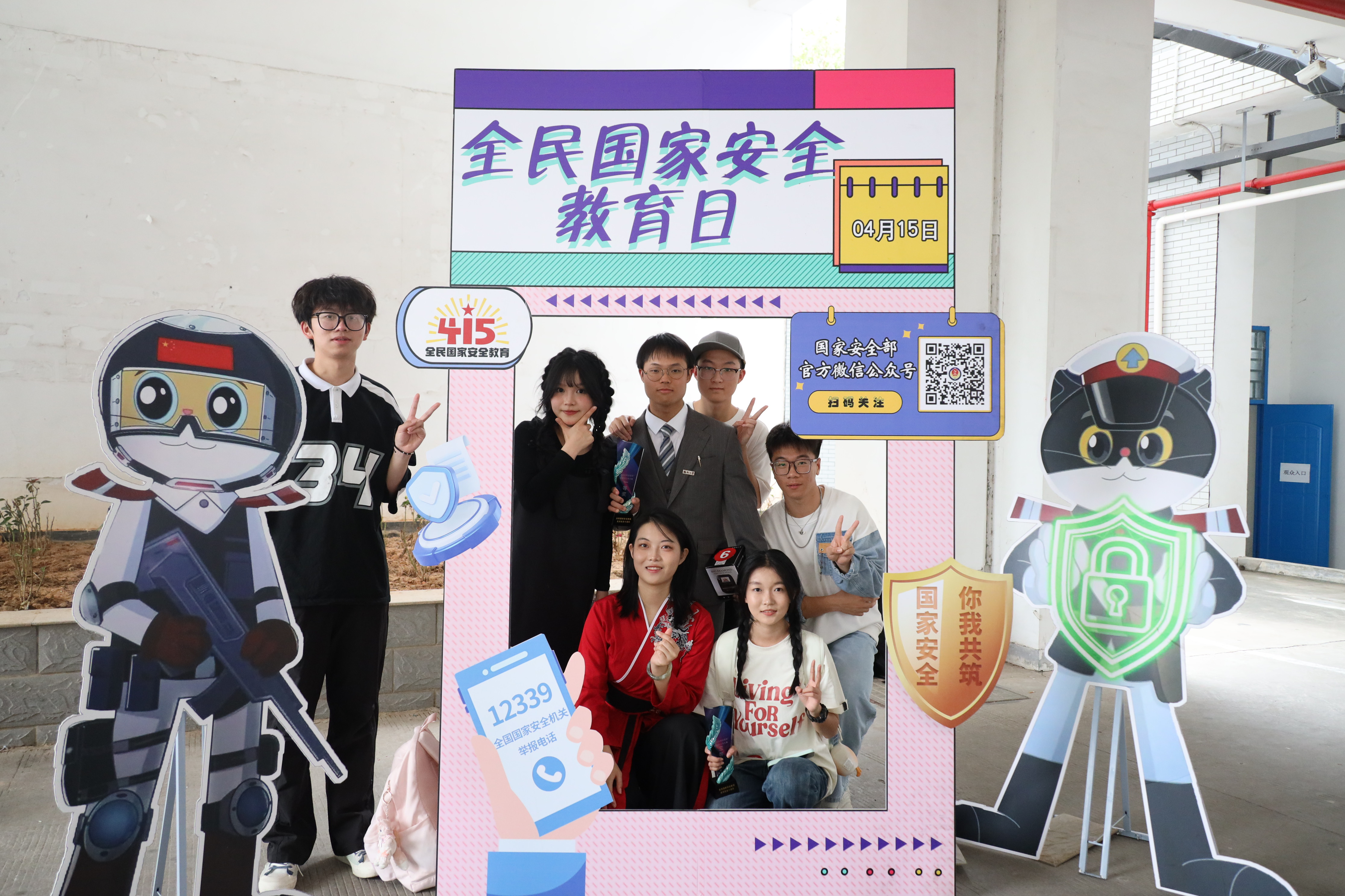同学们在活动标识前打卡