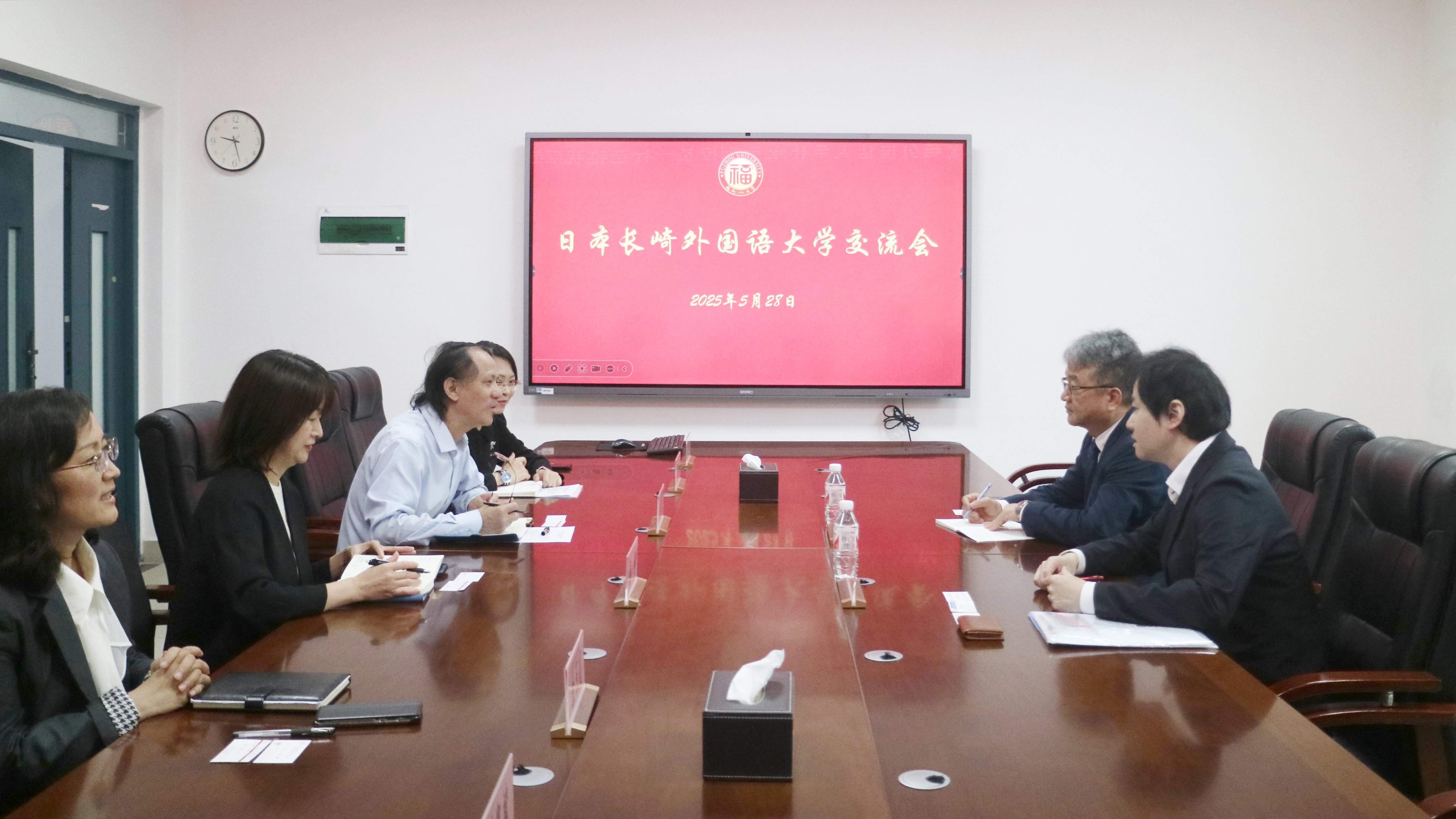 。学院党委书记程贞玫会见了客人,院长钟晓文教授、院长助理葛茜副教授与客人进行了深入座谈。日语系副系主任郑颖老师、金玉花副教授、徐冬梅副教授以及学生代表参加了座谈会。