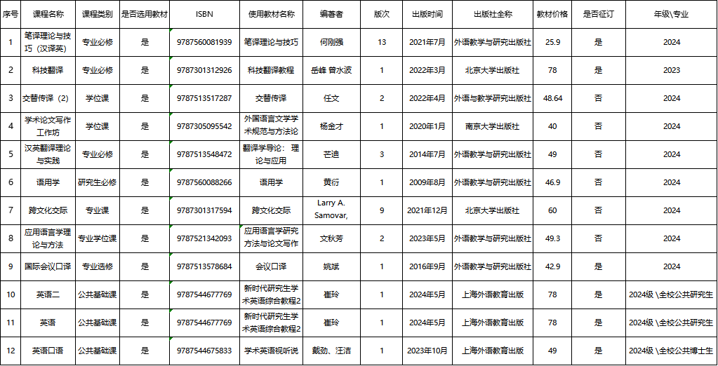 电影天堂 2024-2025学年第二学期研究生课程教材选用汇总表