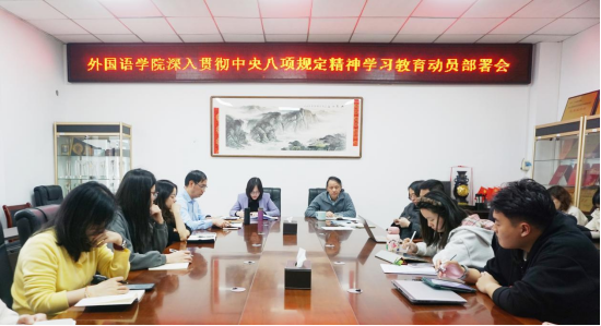 会议最后,程贞玫书记带领与会人员逐条学习中央八项规定及其实施细则,重点围绕“改进调查研究、精简会议活动”等条款展开解读,并结合学院实际工作提出具体落实方向。
