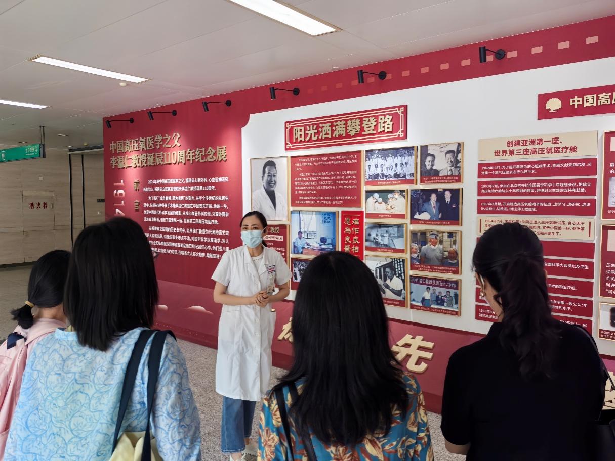活动中,调研组踏入承载八十余载岁月沉淀的院史馆。珍贵的文物史料、生动的历史照片和详实的文献记载,串联起医院从抗战烽火中艰难创院,到成长为现代化三甲医院的壮阔历程。首任院长李温仁教授带领团队白手起家、披荆斩棘的创业故事,以及一代代省立人勇攀医学高峰的感人事迹,在宁宇部长的生动讲解中徐徐展开,让在场教师深刻感受到“精于医术、诚于医德” 的省立精神内核。调研组一行还参观了福建省心血管病研究所。这里作为东南地区医学研究的前沿阵地,心脏介入治疗的创新技术、心血管疾病基础研究的突破性成果,无不彰显着现代医学科技的蓬勃生命力,令众人赞叹不已。